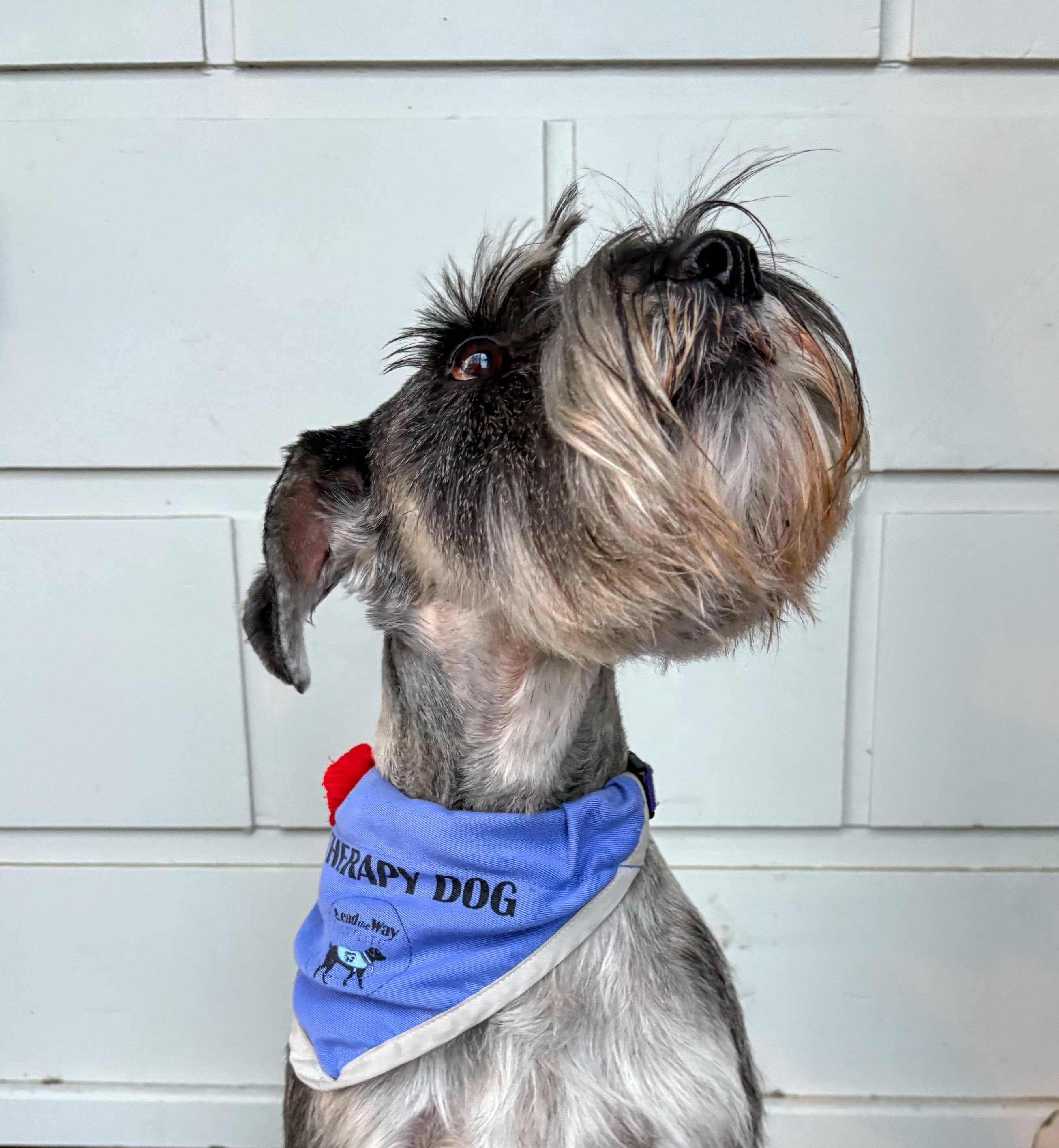 Poppy is a therapy dog who works with Chloe, one of our psychologists, to support clients in their sessions. She has a gentle, curious nature and enjoys building relationships at her own pace. As that bond grows, Poppy shows her trust by spending more time close to you, often lying nearby or leaning in for extra pats.
